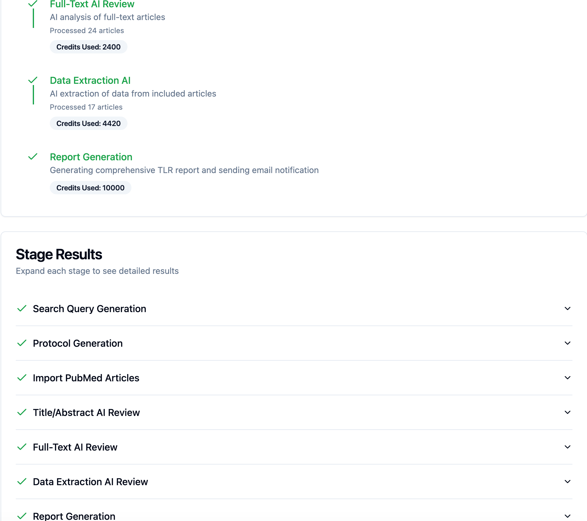 EasySLR’s automated, AI-powered TLR workflow is designed to help research teams move from search to report faster, with no human intervention. This feature is especially useful for targeted literature reviews, rapid evidence assessments, and early scoping work where speed, consistency, and traceability are critical.