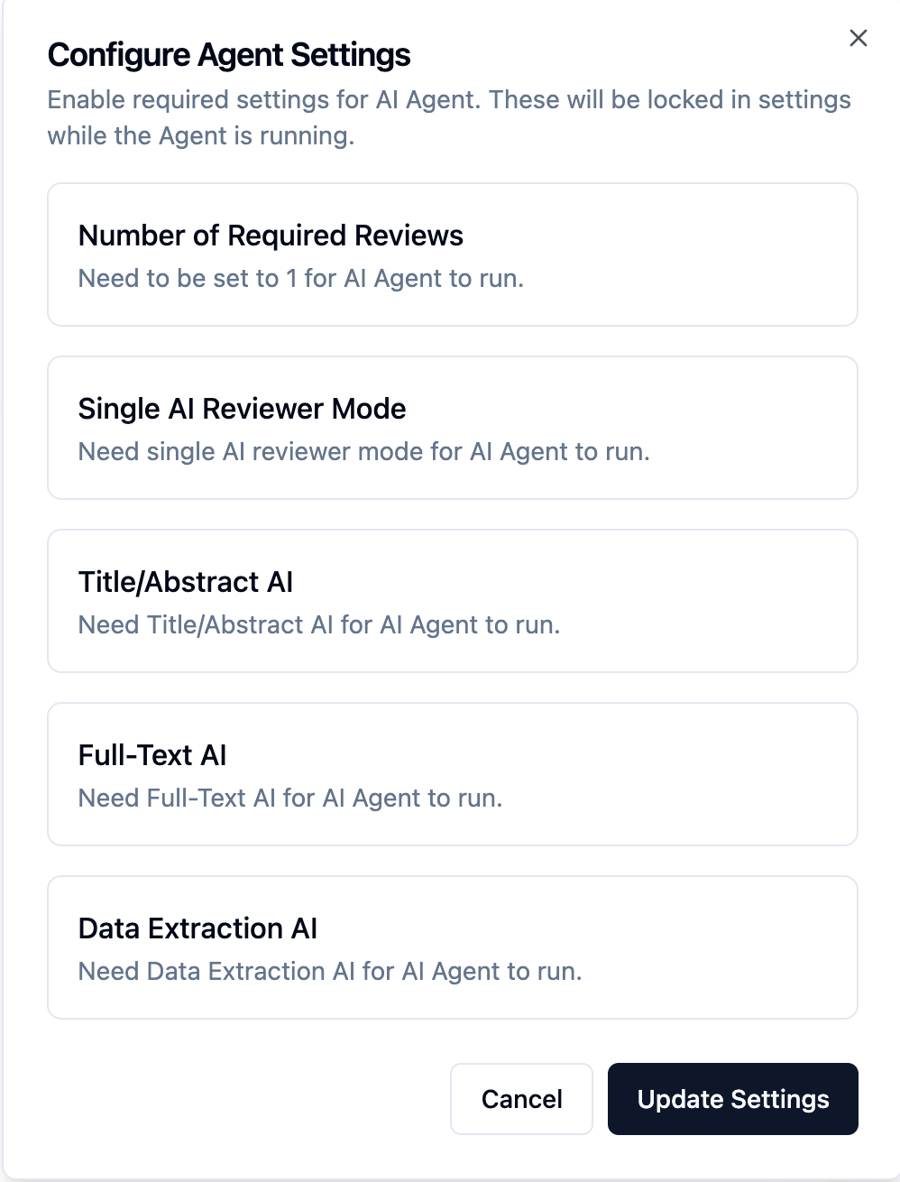 Enable AI at Title-abstract, Full-text and Data extraction stages