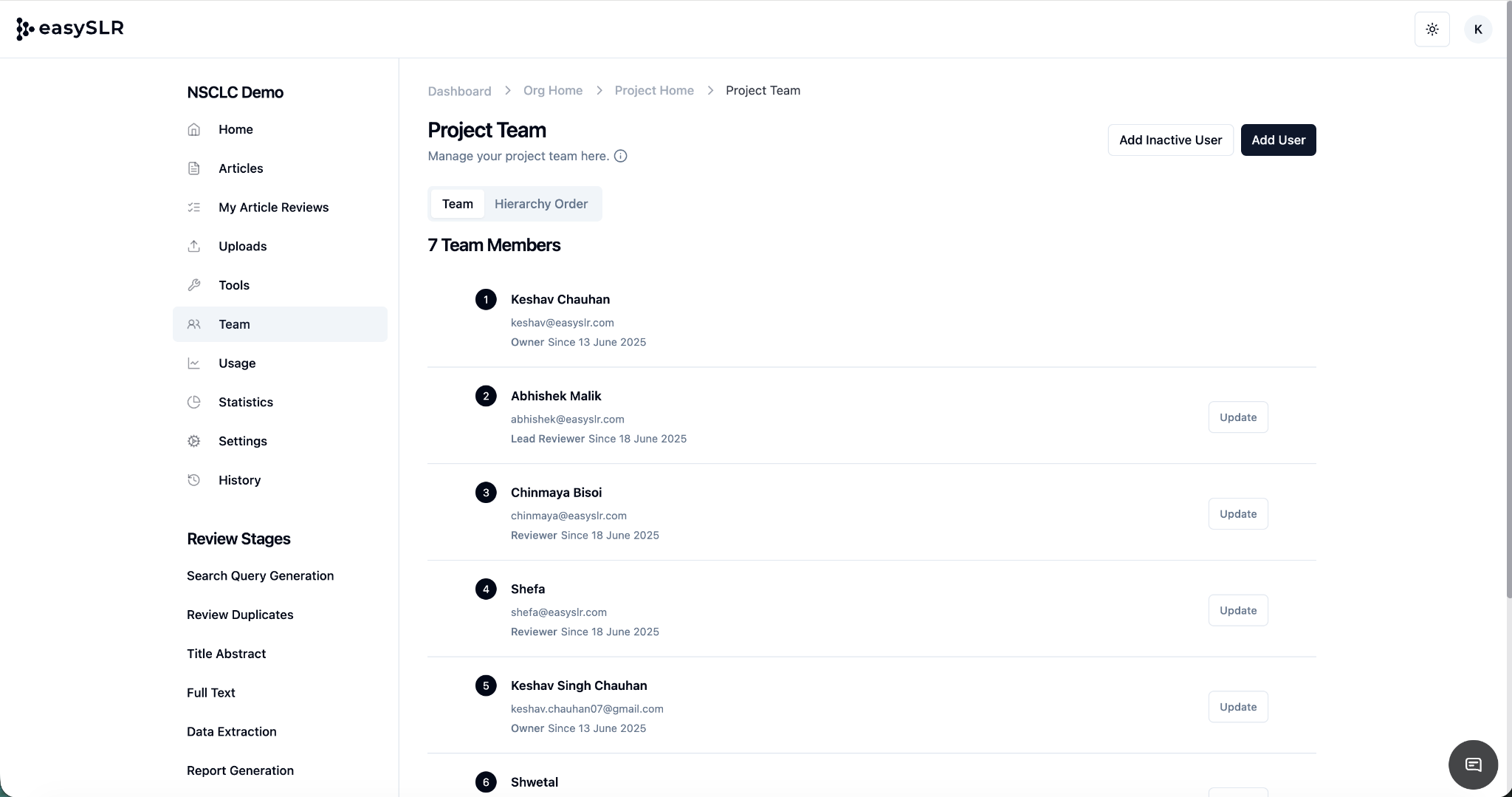 EasySLR is built to simplify and streamline the key stages of the Systematic Literature Review (SLR) process, starting right after your protocol development and literature search are underway. The platform helps reduce manual effort, speed up ...