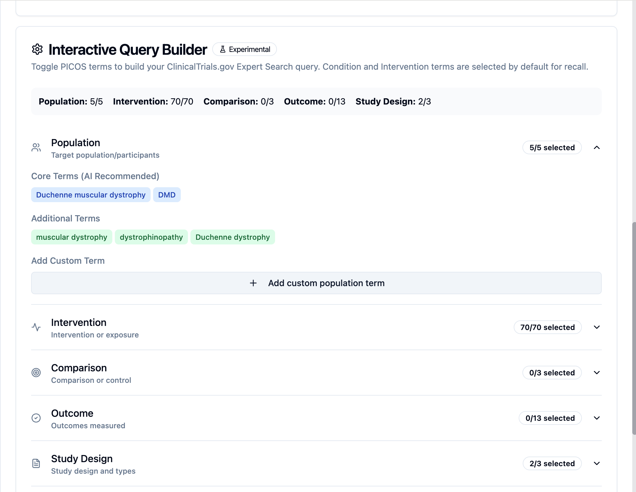 Ensuring all relevant PICOS terms are captured in your clinical trials search