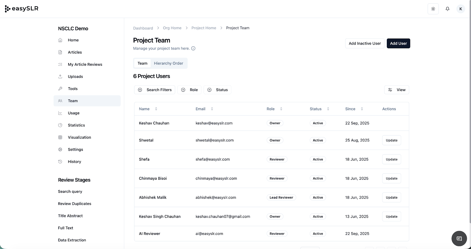 4. The role or status of a user can be updated by clicking the "Update" button.