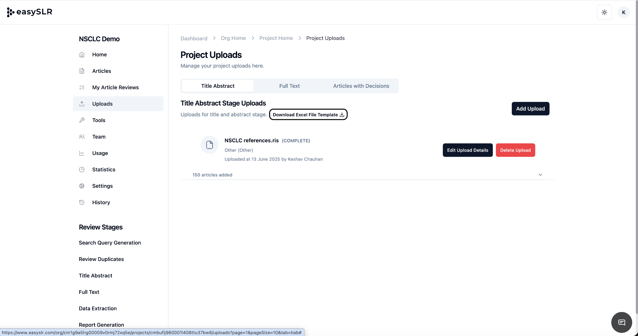 The system automatically assigns RefIDs to citations in sequential order upon uploading the RIS file, while CustomIDs can be manually allocated as needed.