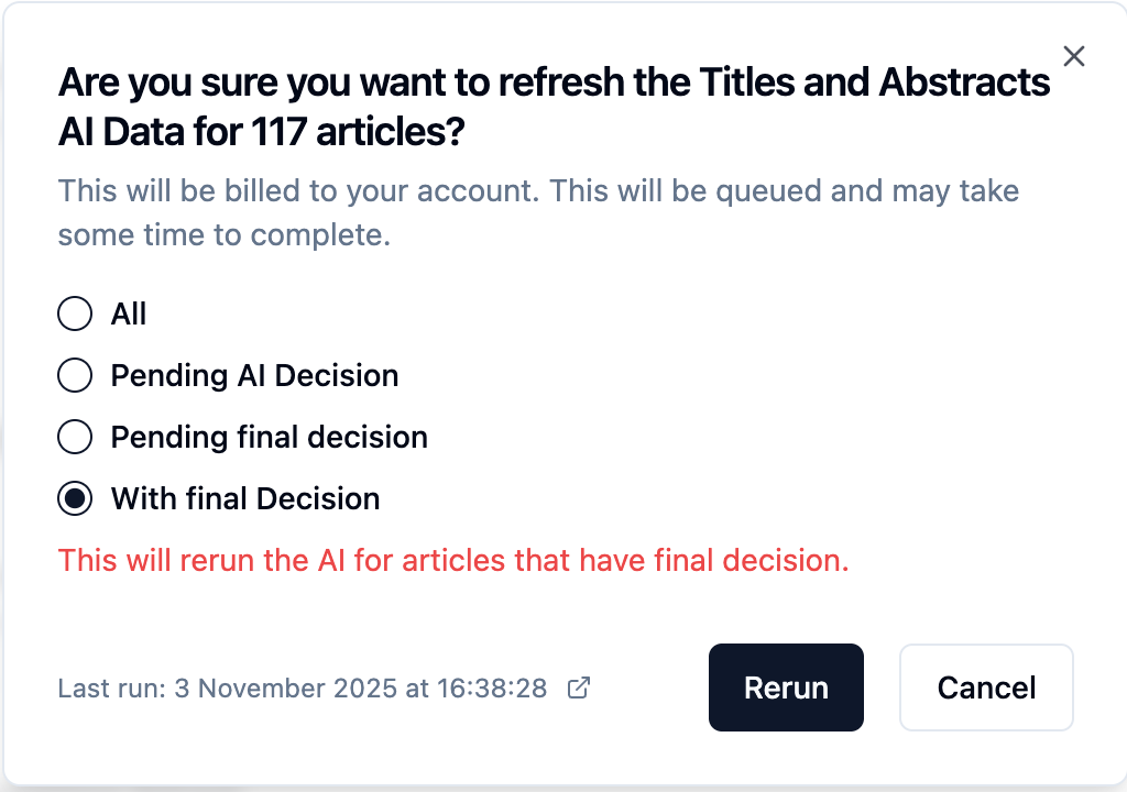 Step 3: Click Rerun AI for Title Abstract AI Suggestions Refresh