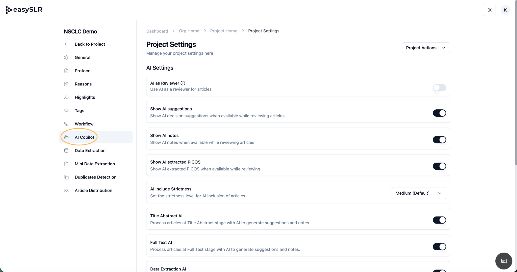 EasySLR utilises advanced artificial intelligence to streamline and enhance the article screening process. Within the platform, two key AI features play pivotal roles: the AI Assistant and the AI Reviewer. While both are designed to enhance ...