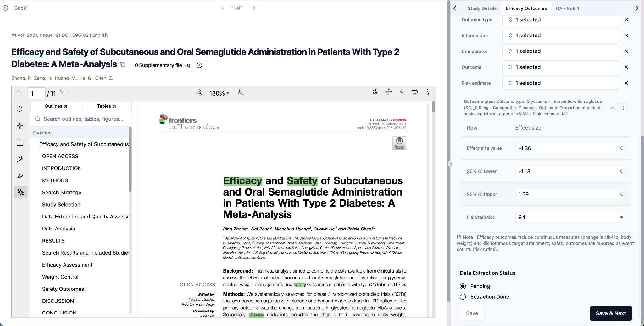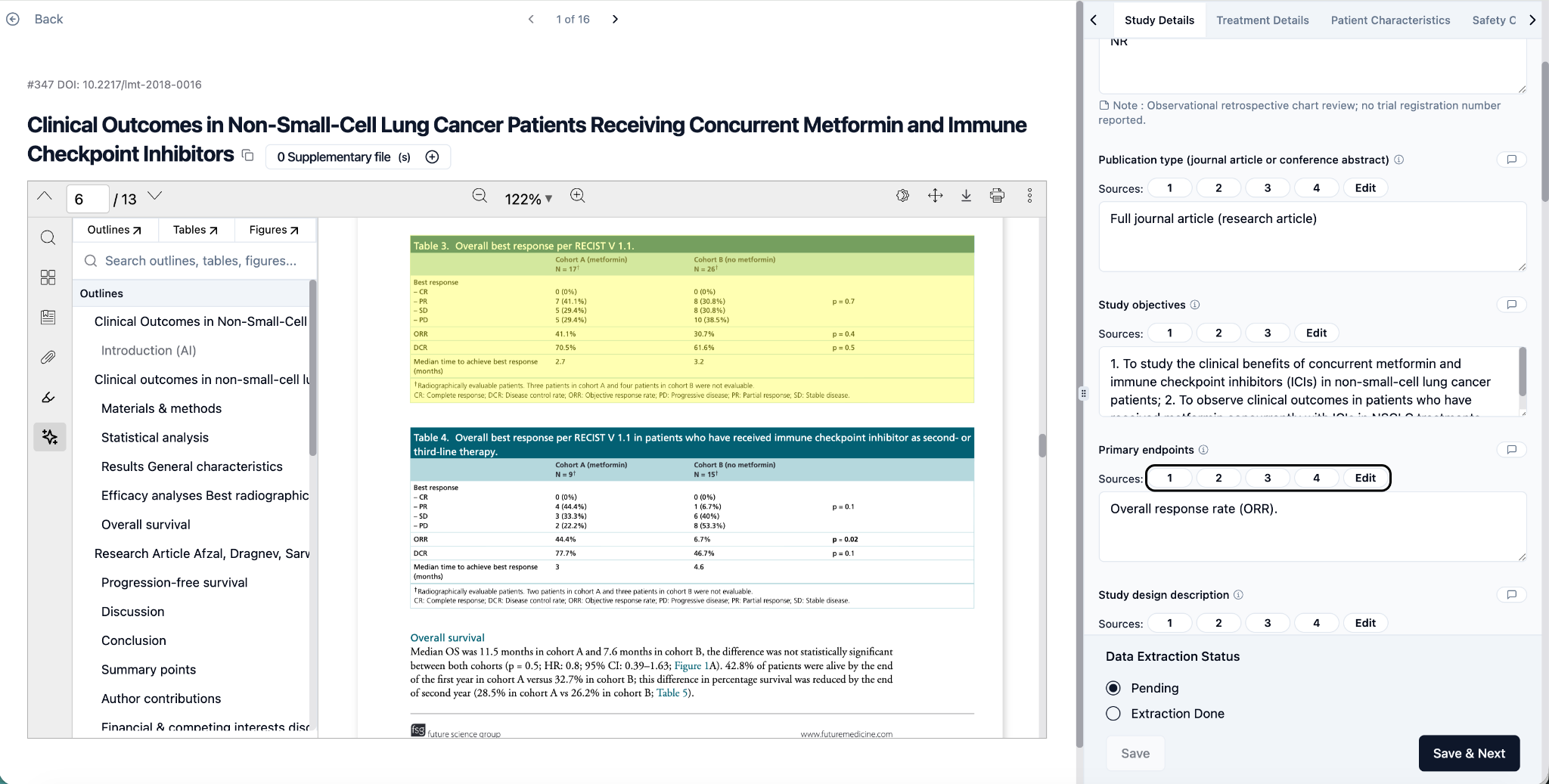 Note: Using the "Save & Next" button allows reviewers to proceed to the next article while keeping the current article in its respective extraction stage.
