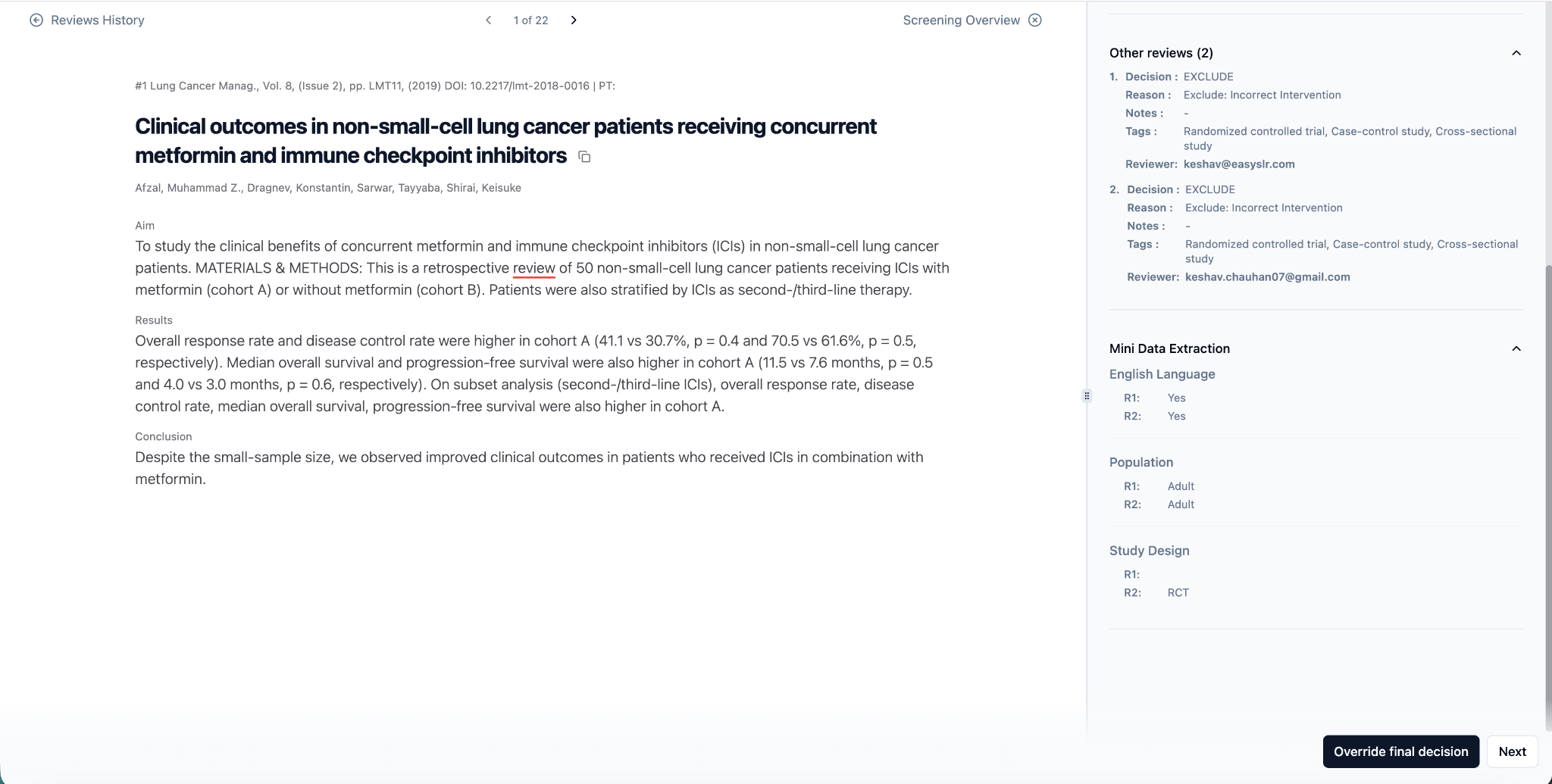 For each article, the Mini Data Extraction fields will appear.