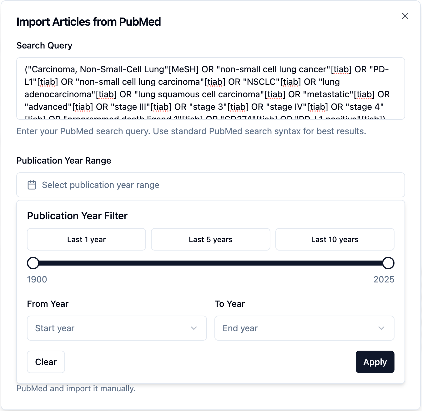 Select a Publication Year range to narrow your import.